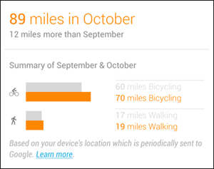 Shows a rough approximation of how far you walked or cycled during the past month.